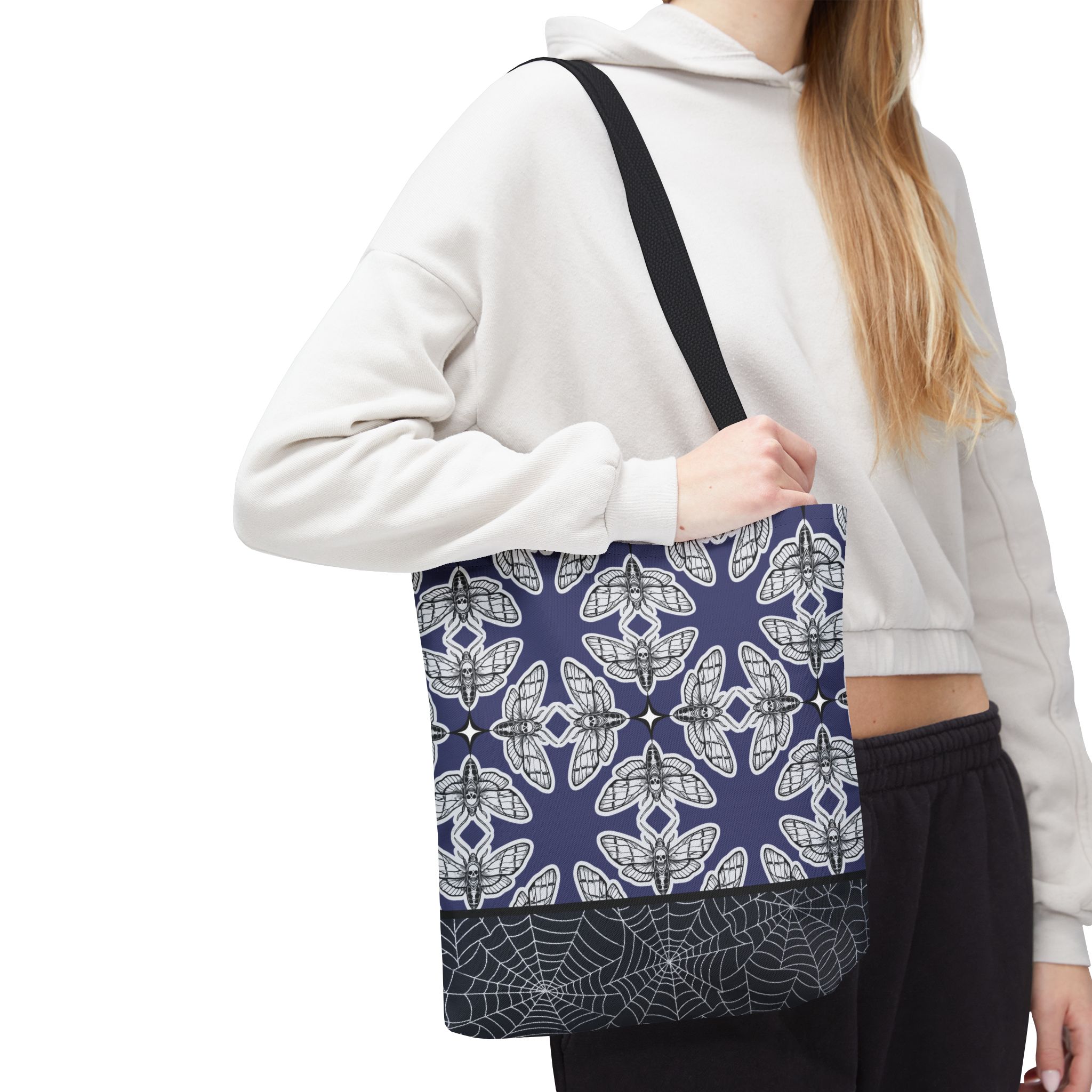 Step into the shadows of style with the Death Moth “Future Dusk” Tote Bag — a gothic-chic carryall that combines haunting beauty with everyday practicality. Featuring an all-over print inspired by twilight tones and the mysterious Death Moth, this tote is the perfect accessory for those who love a blend of elegance and edge.