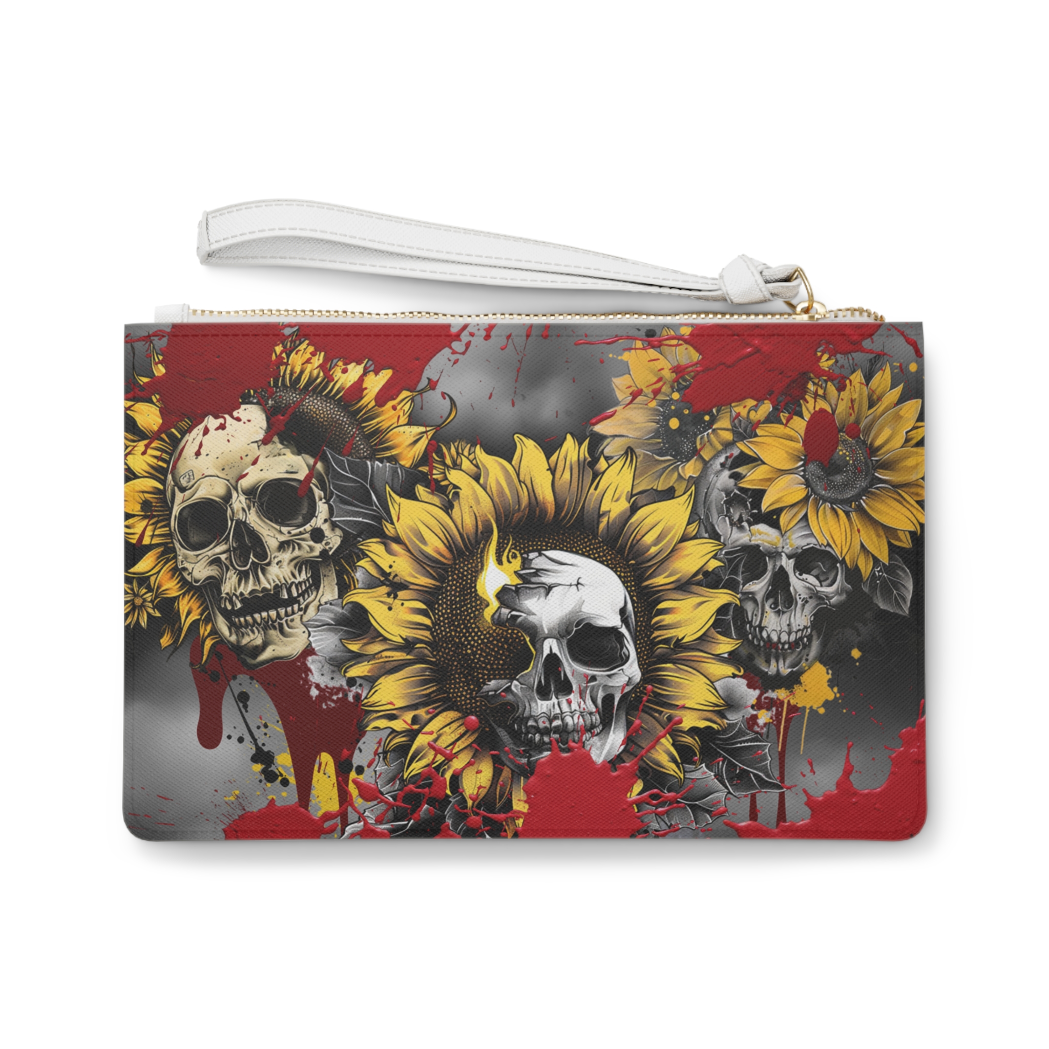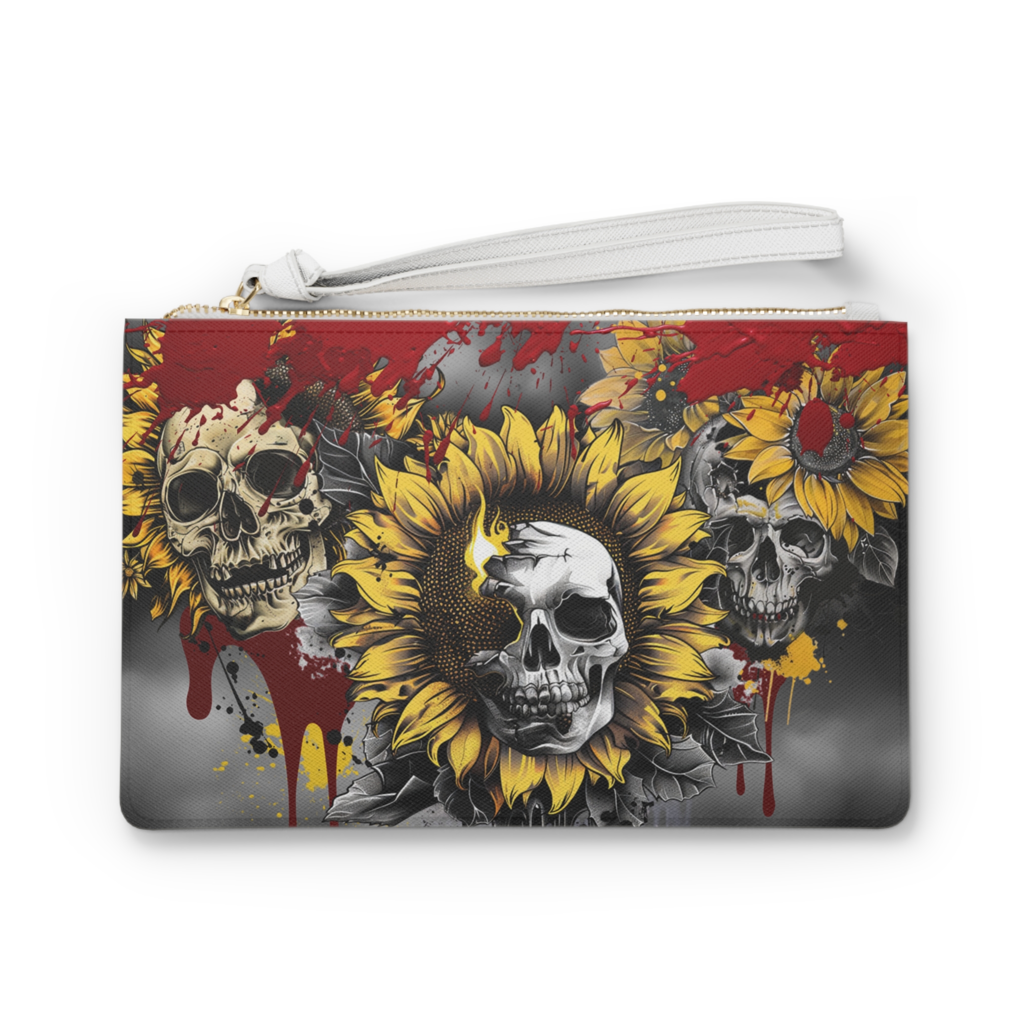 Gothic Floral Clutch Bag, Edgy Sunflower Pouch, Skull Print Handbag, Unique Gift for Him/Her, Festival Accessory, Horror Style