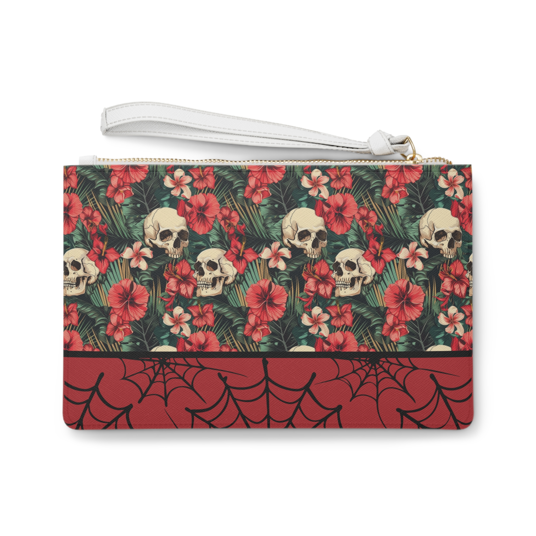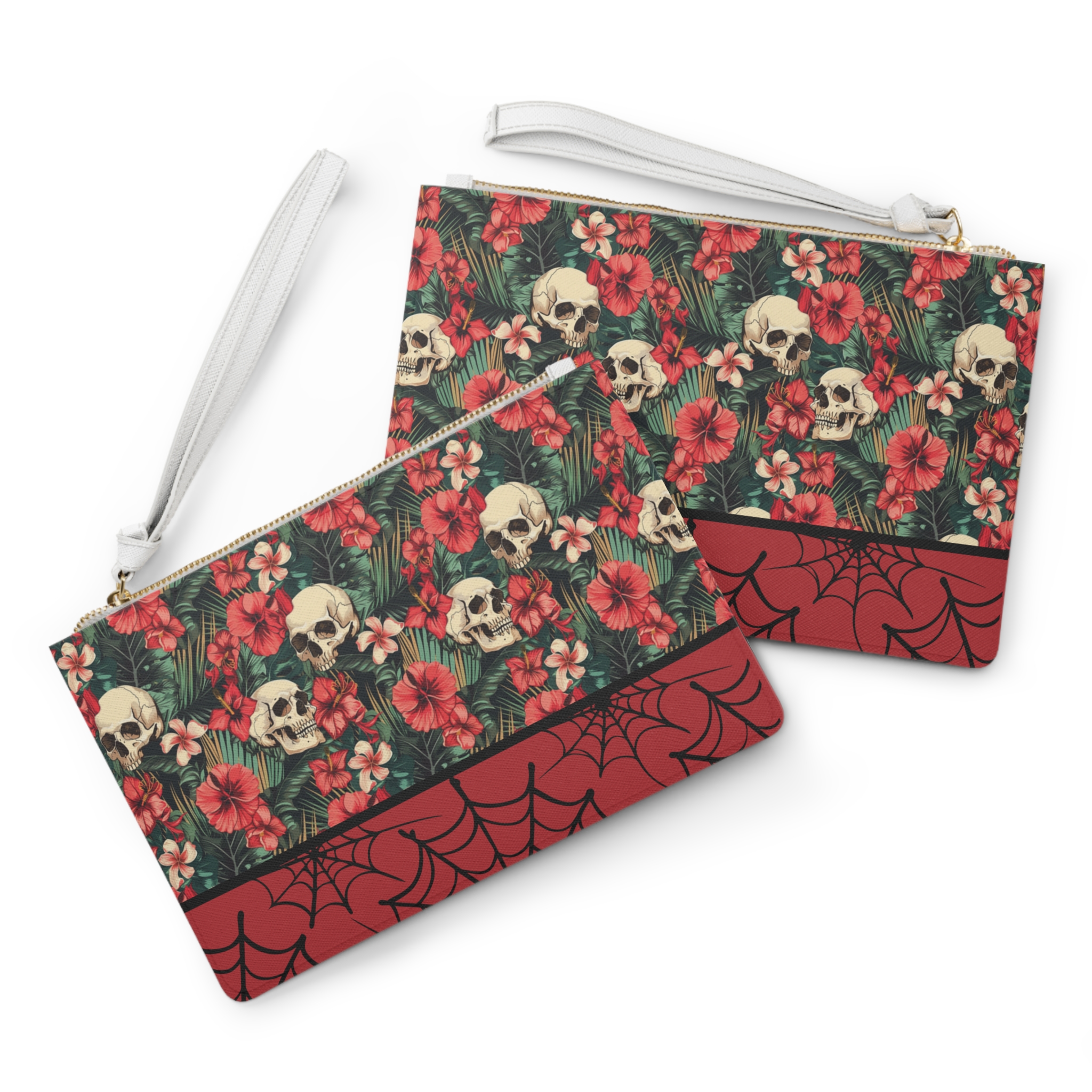 Gothic Floral Clutch Bag, Skull Print Purse for Halloween, Floral Makeup Bag, Edgy Evening Bag, Unique Gift for Her