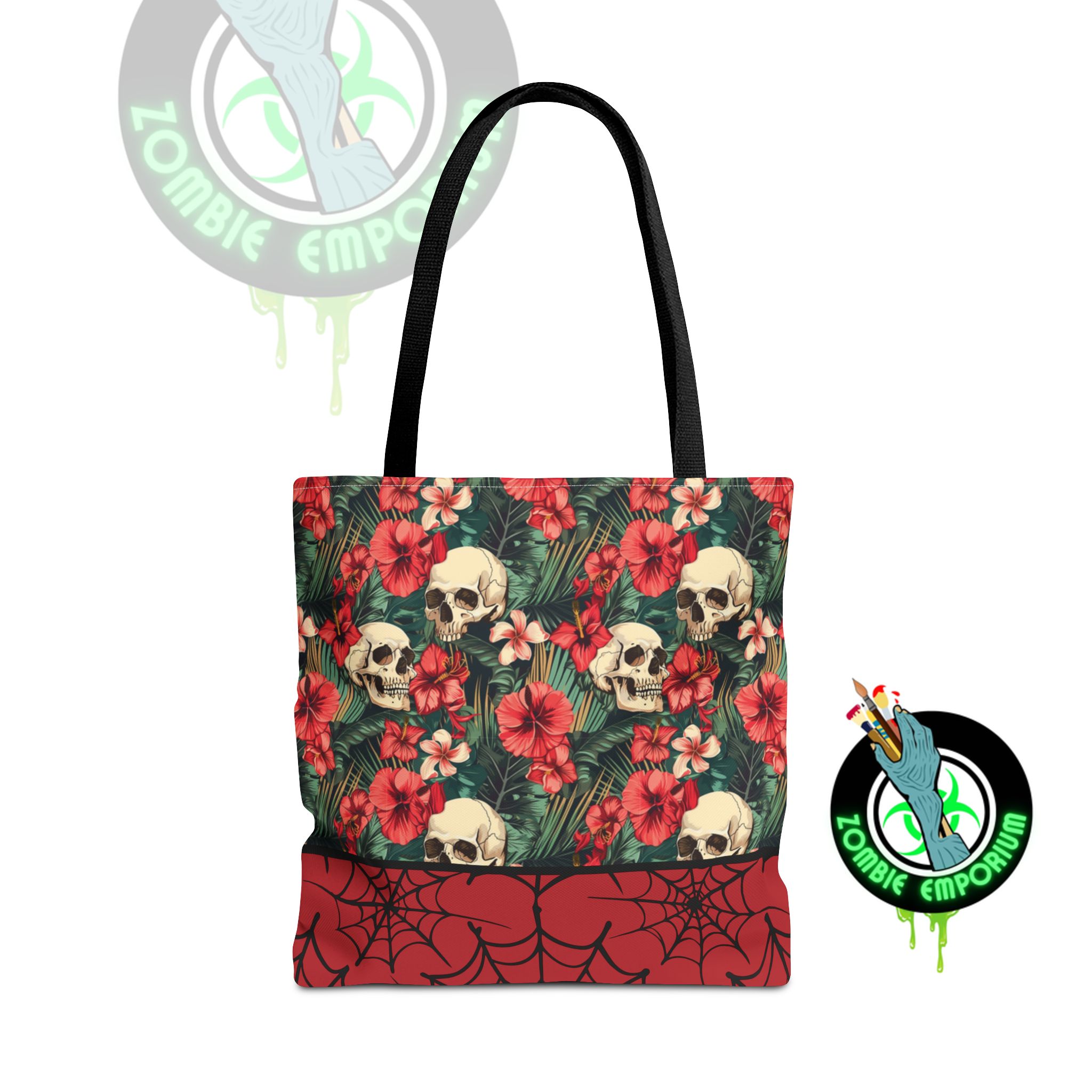 Introducing a striking tote bag that combines style with functionality. This tote bag features a unique floral and skull design, perfect for making a bold statement wherever you go. Its durable polyester body ensures it withstands daily wear, making it ideal for shoppers, students, or anyone on the go. The boxed corners provide extra space, so you can easily carry your essentials, whether it’s groceries, books, or beach gear. With multiple color handle options, you can express your unique style while promoting sustainability. This tote bag is perfect for all occasions such as Halloween celebrations, day trips, or casual outings, making it a versatile addition to any wardrobe. It also makes a fantastic gift for loved ones who appreciate unique and functional fashion. Let this tote bag be your go-to accessory for showcasing your individuality while being practical and on-trend!