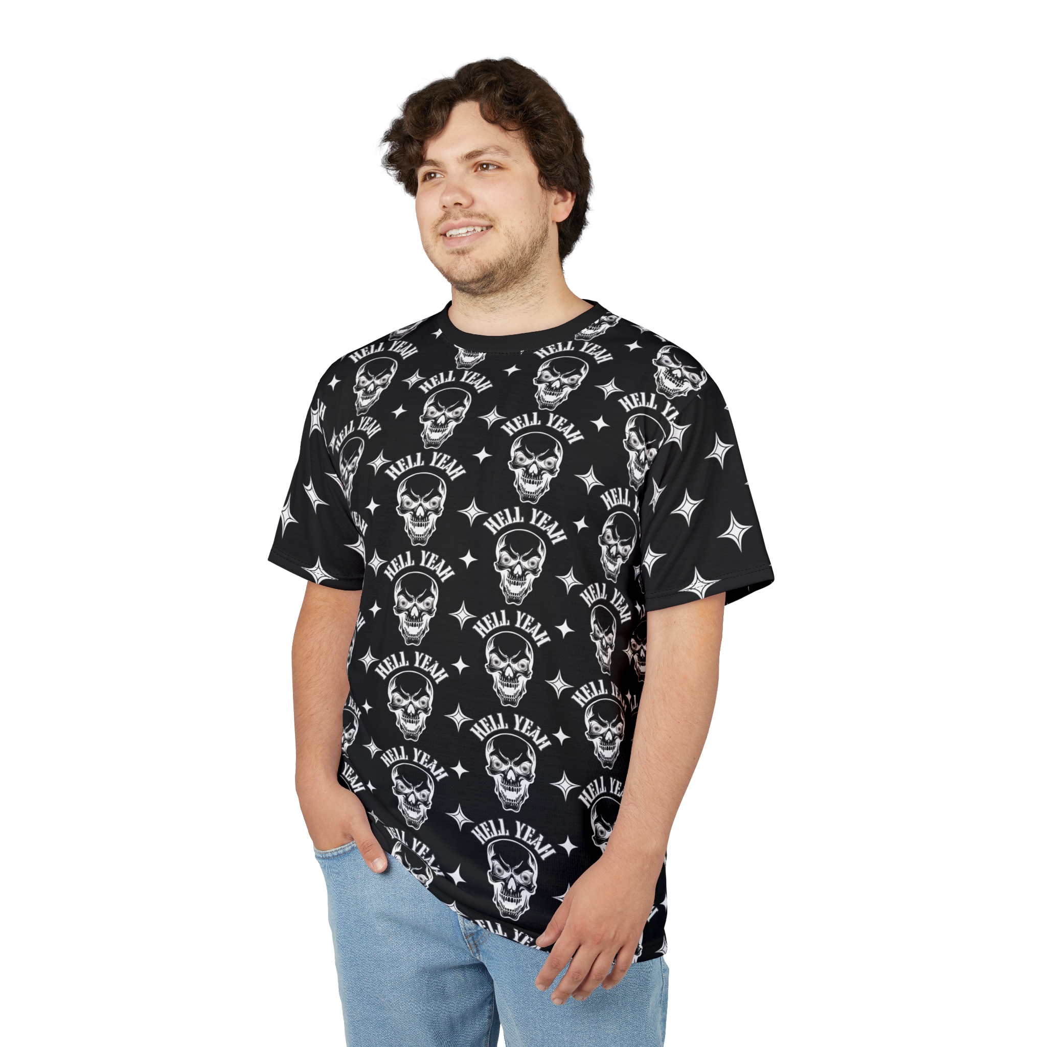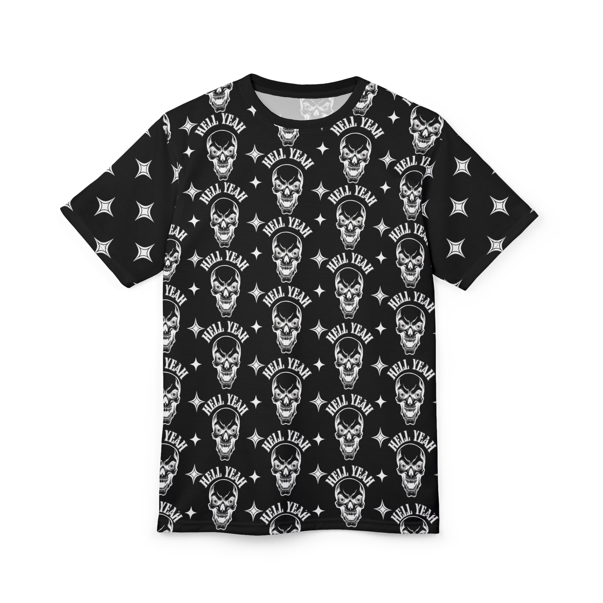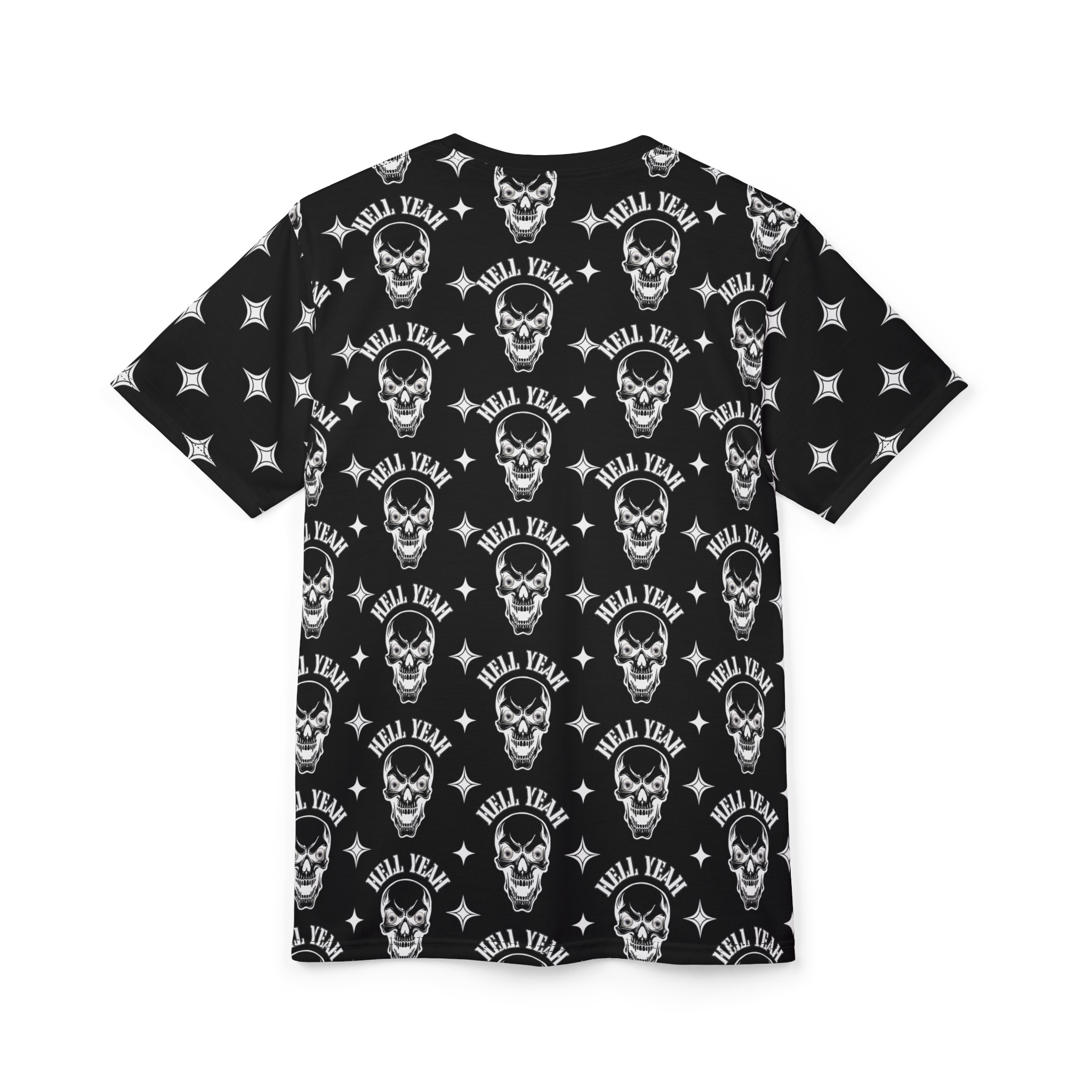 Introducing the ultimate monochrome essential: the HELL YEAH Skull AOP Unisex Tee.