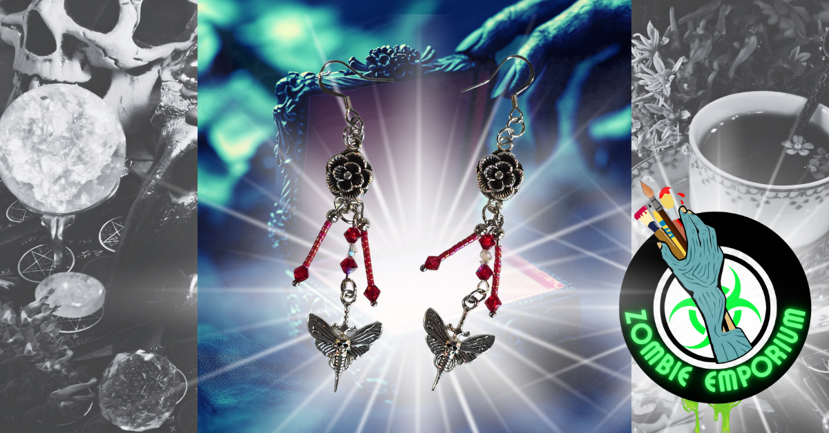 Rose Deathmoth Dagger Earrings -Inspired by Rose | Zombie Emporium