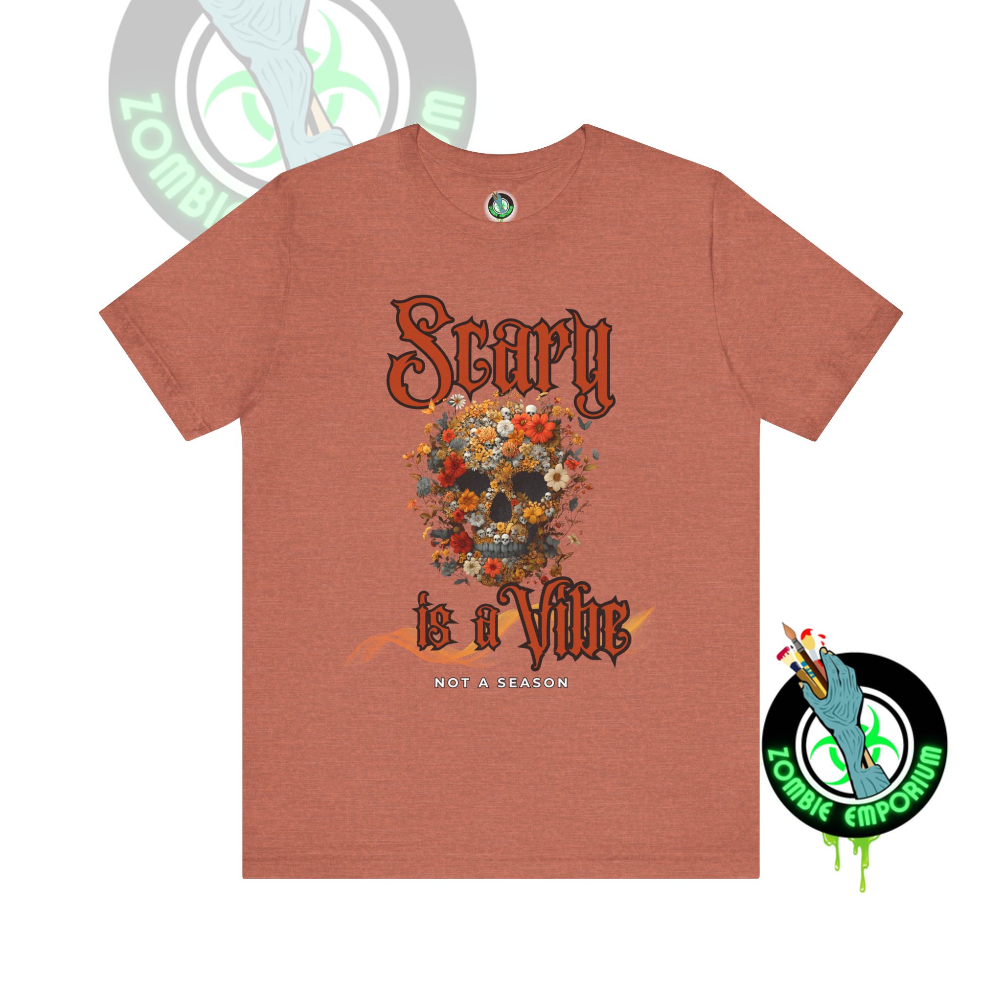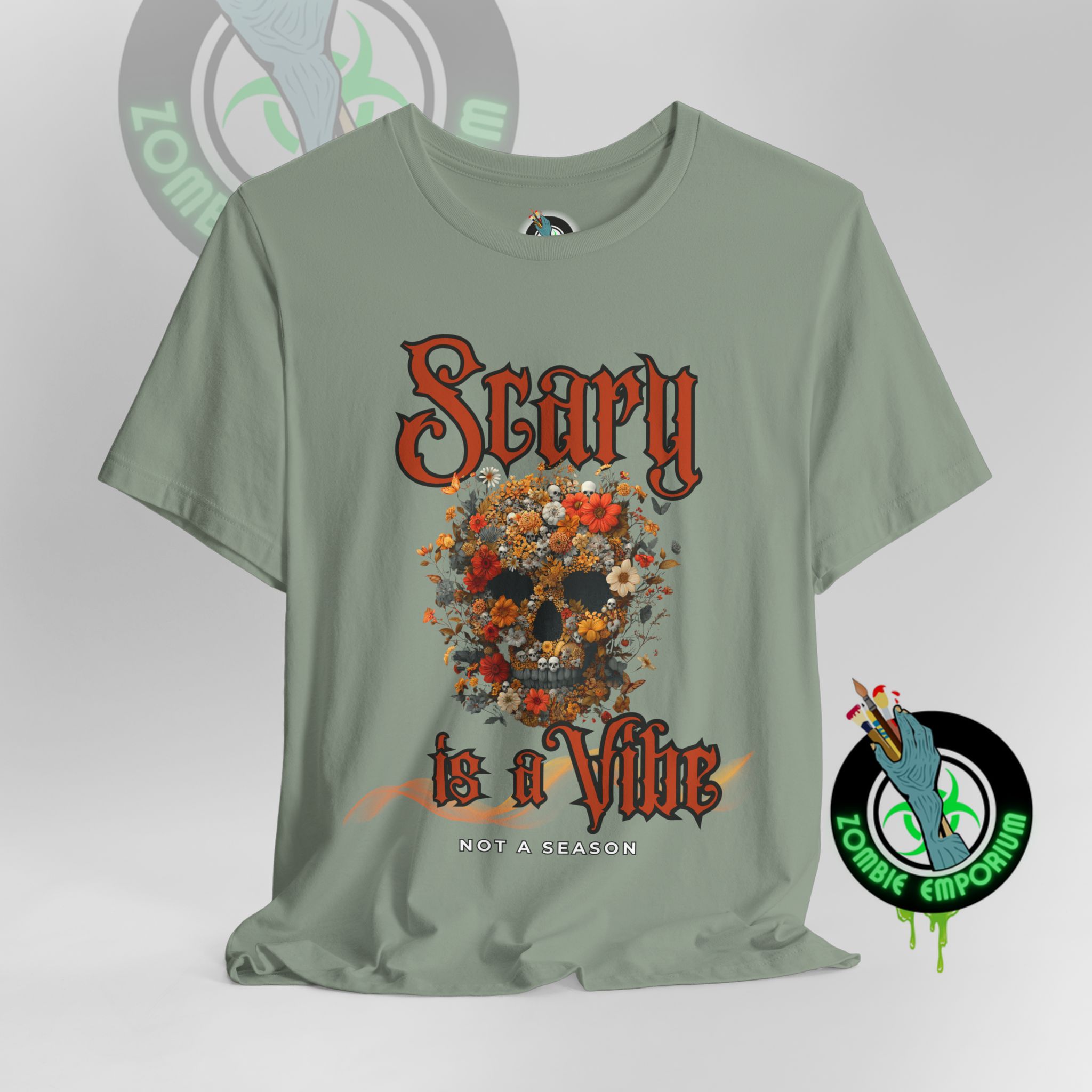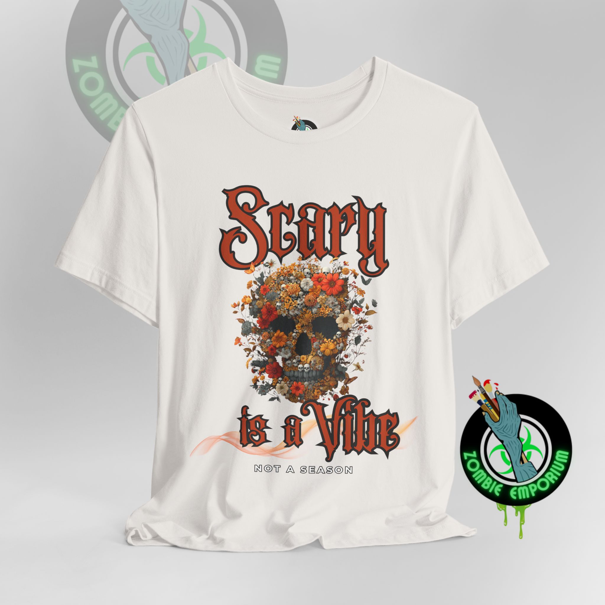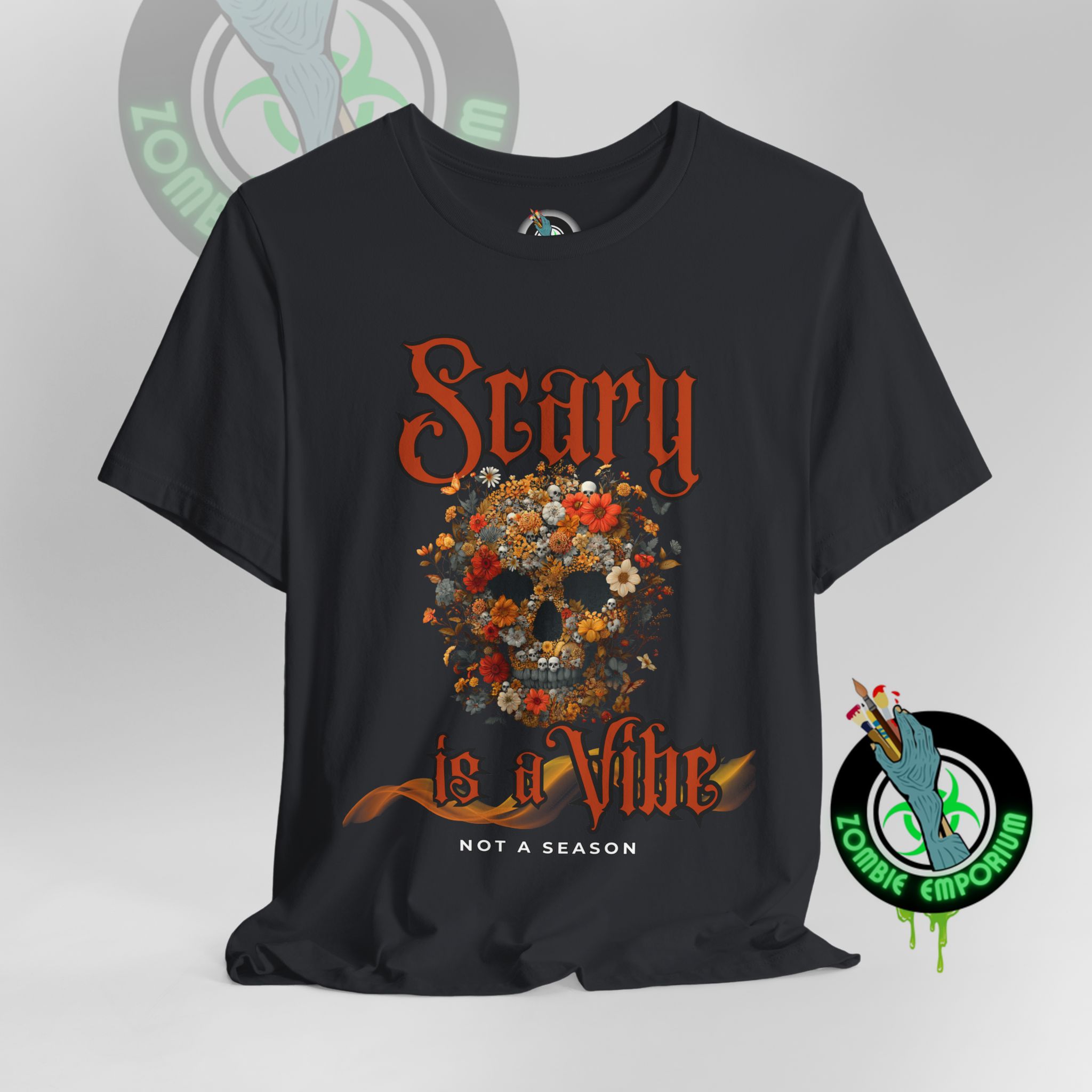 Scary is a Vibe Autumn t-Shirt – Skull Floral Design | Zombie Emporium