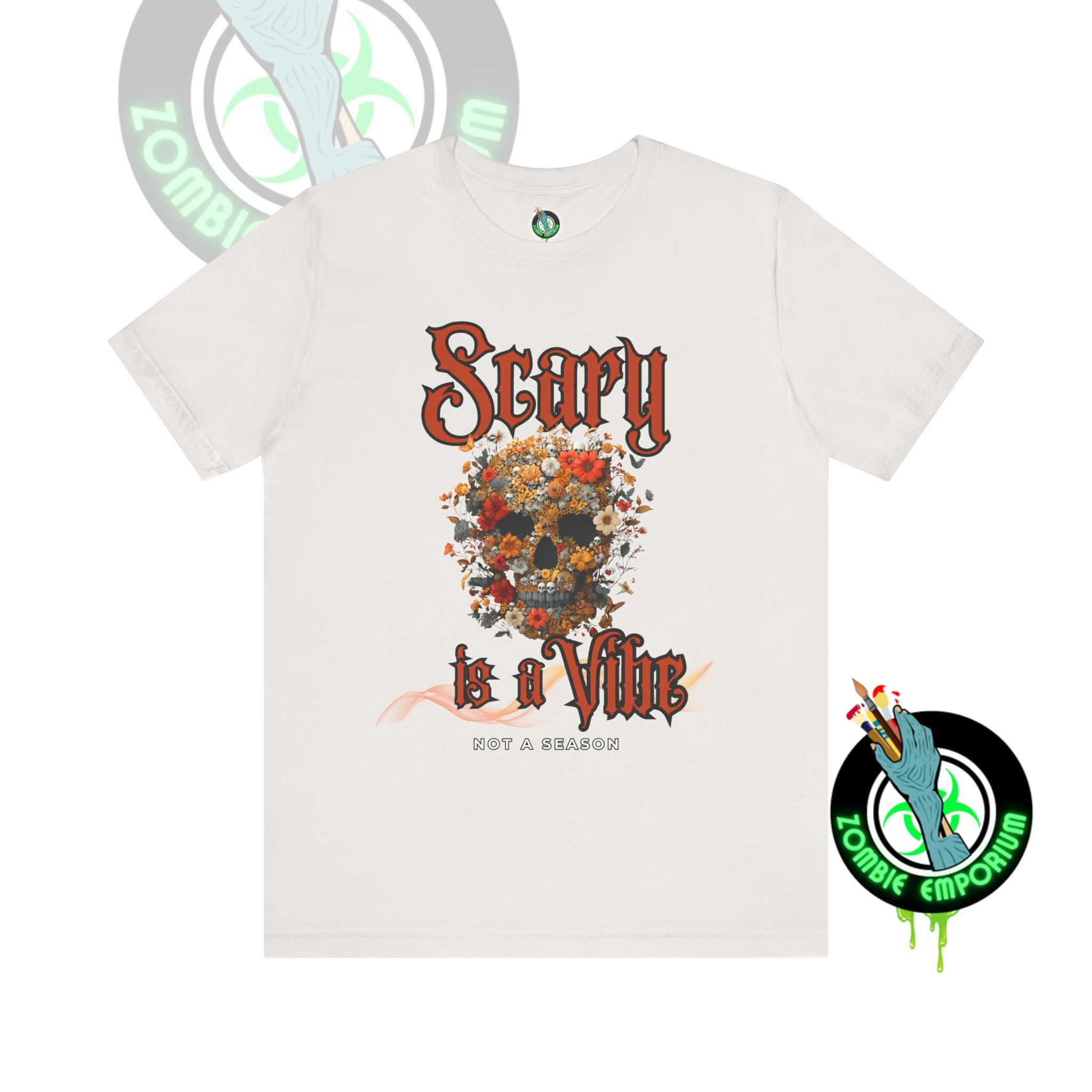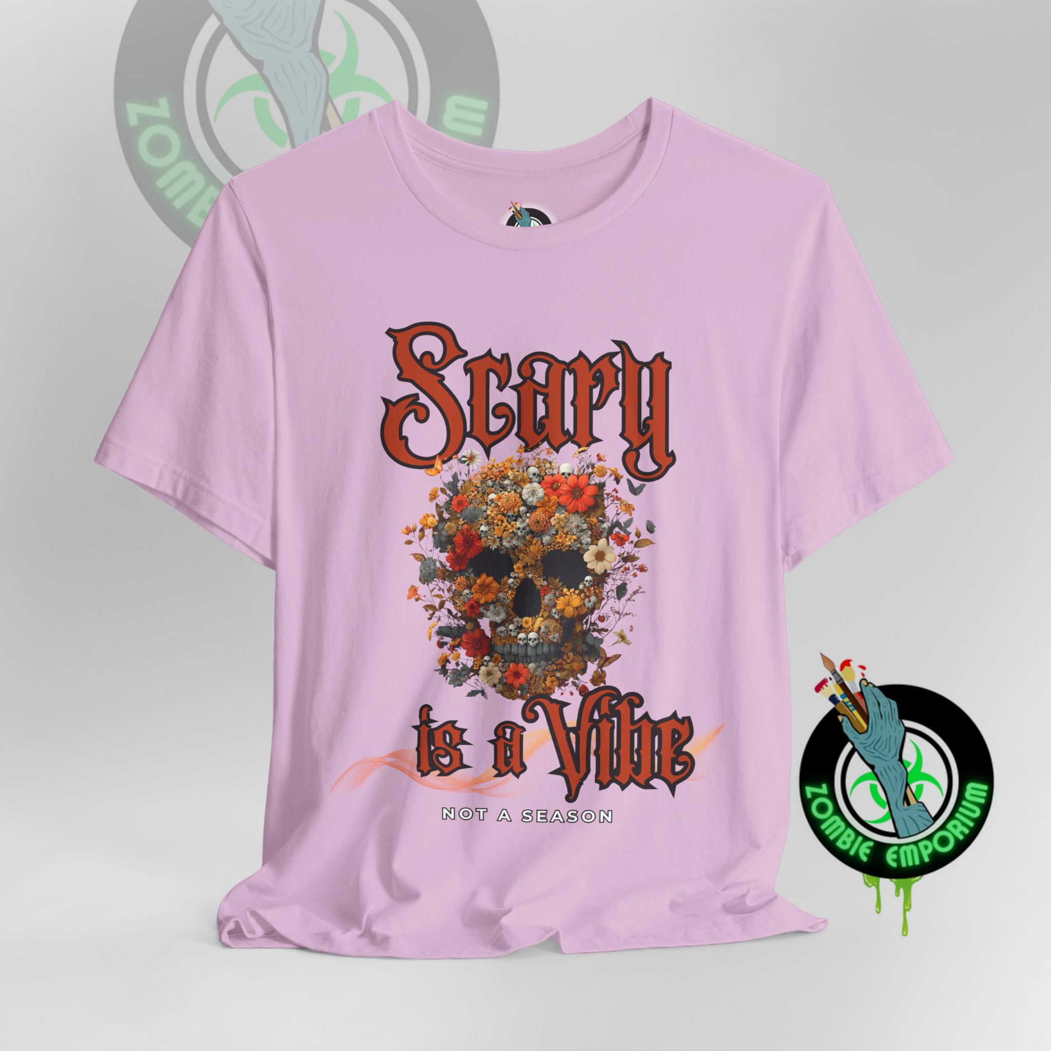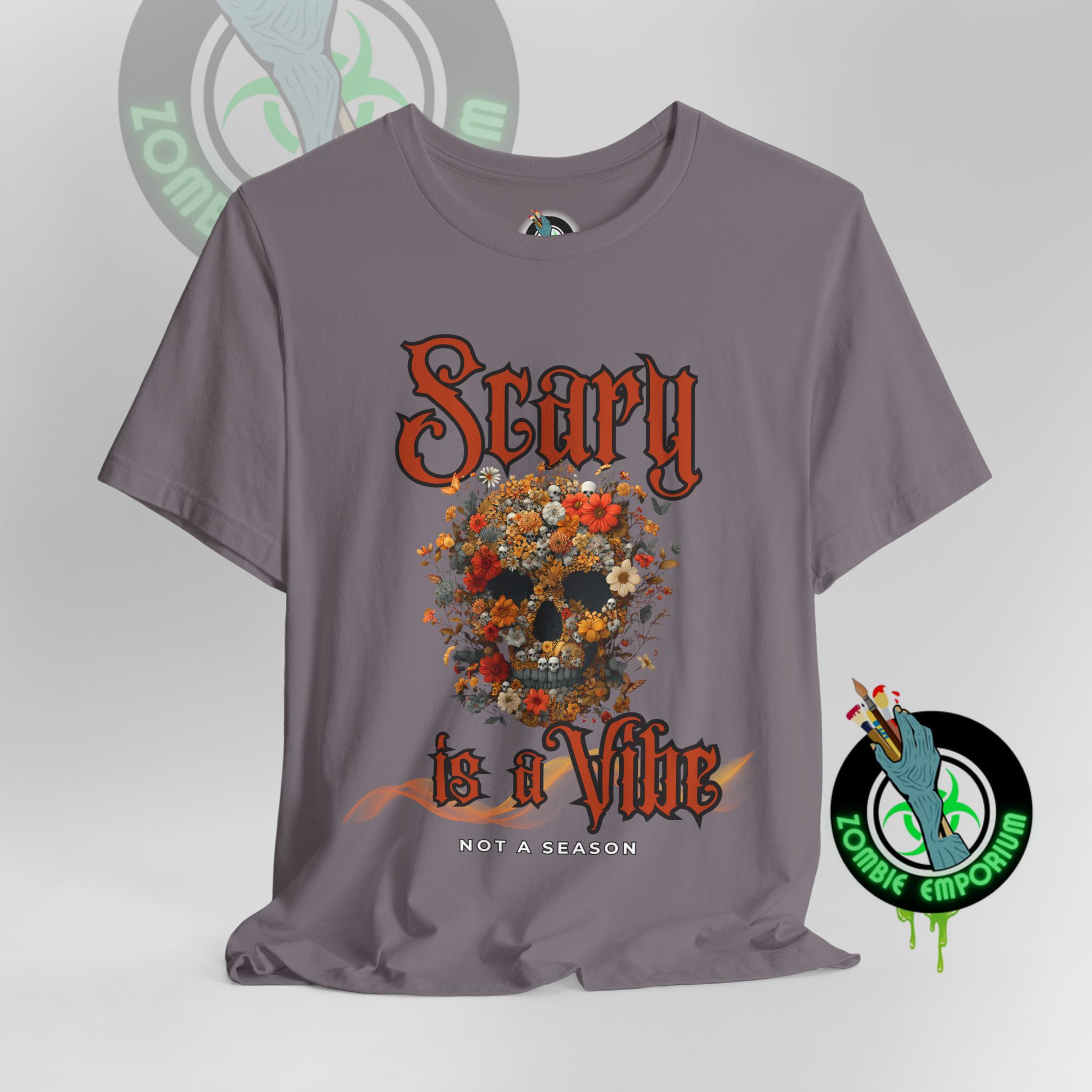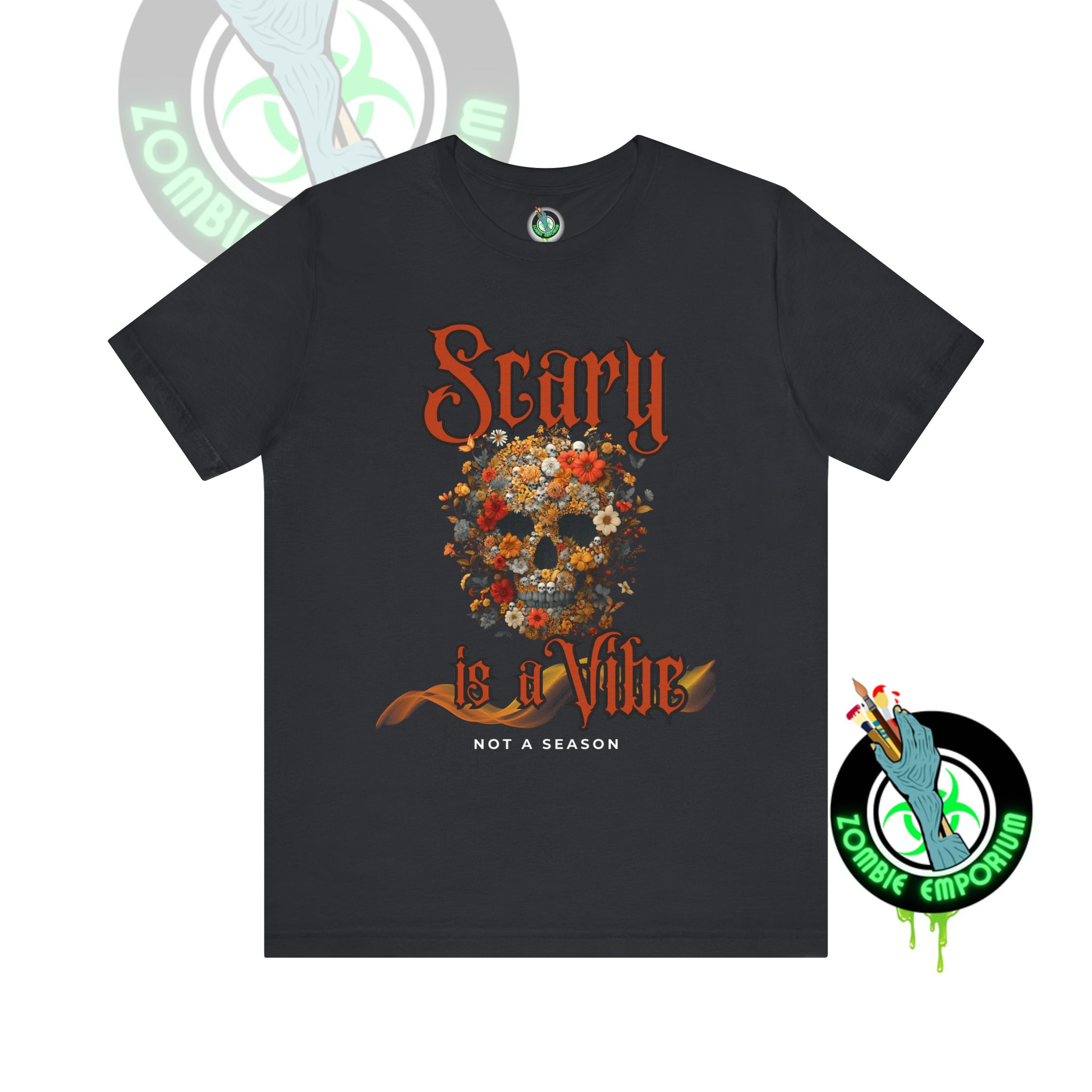 Scary is a Vibe Autumn t-Shirt – Skull Floral Design | Zombie Emporium