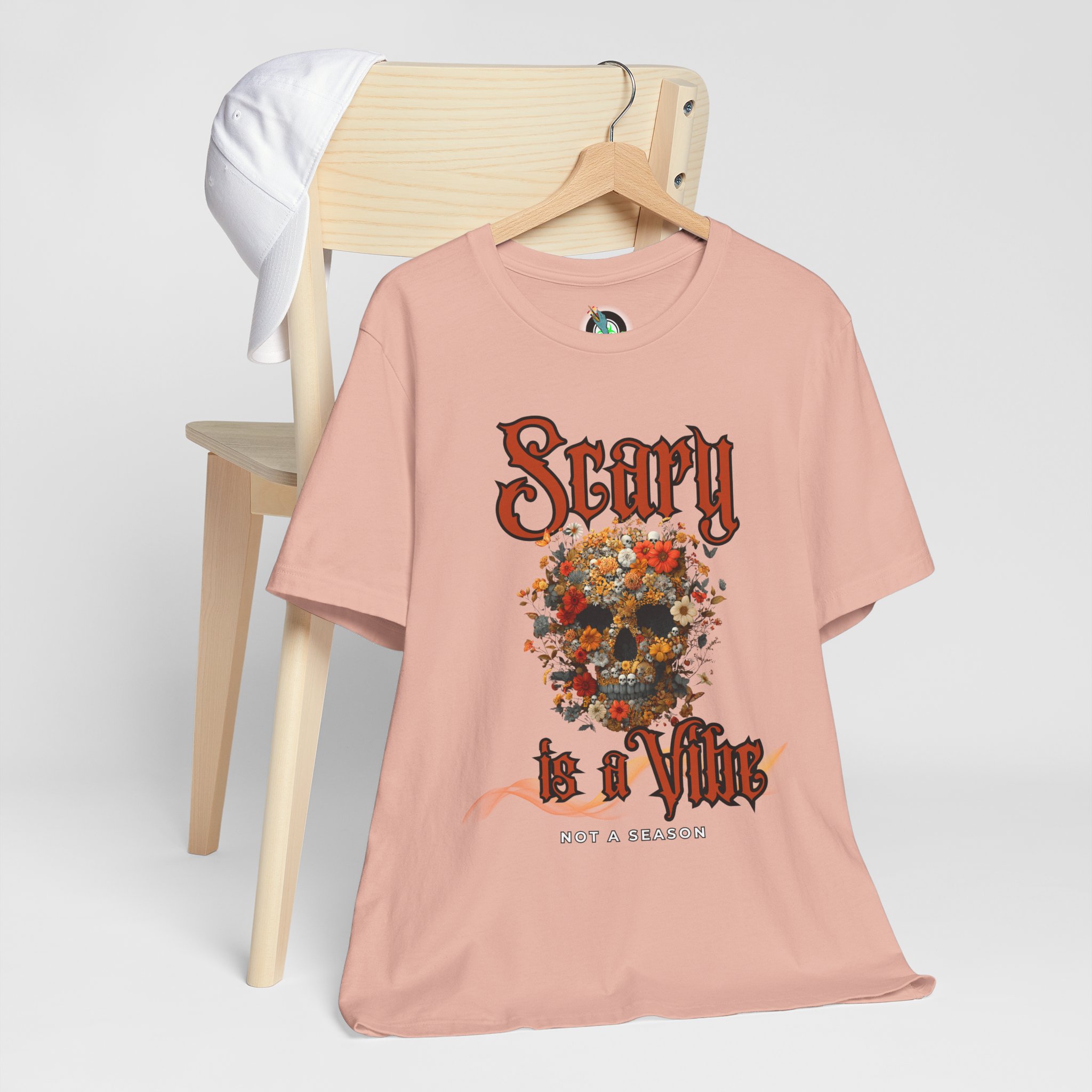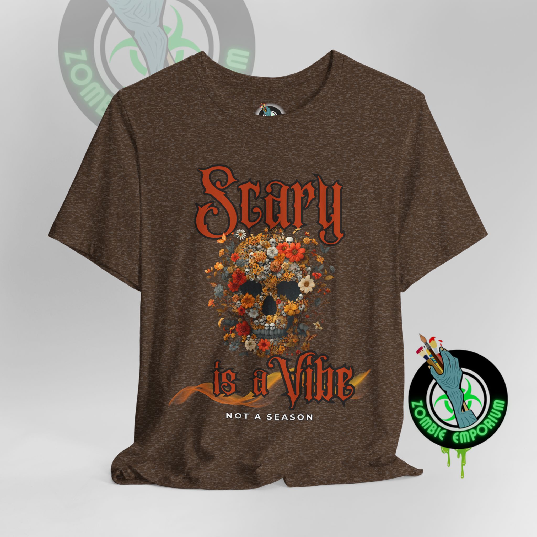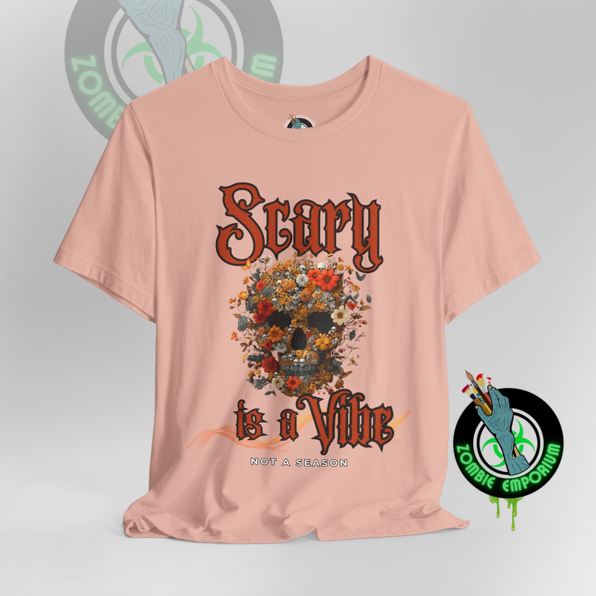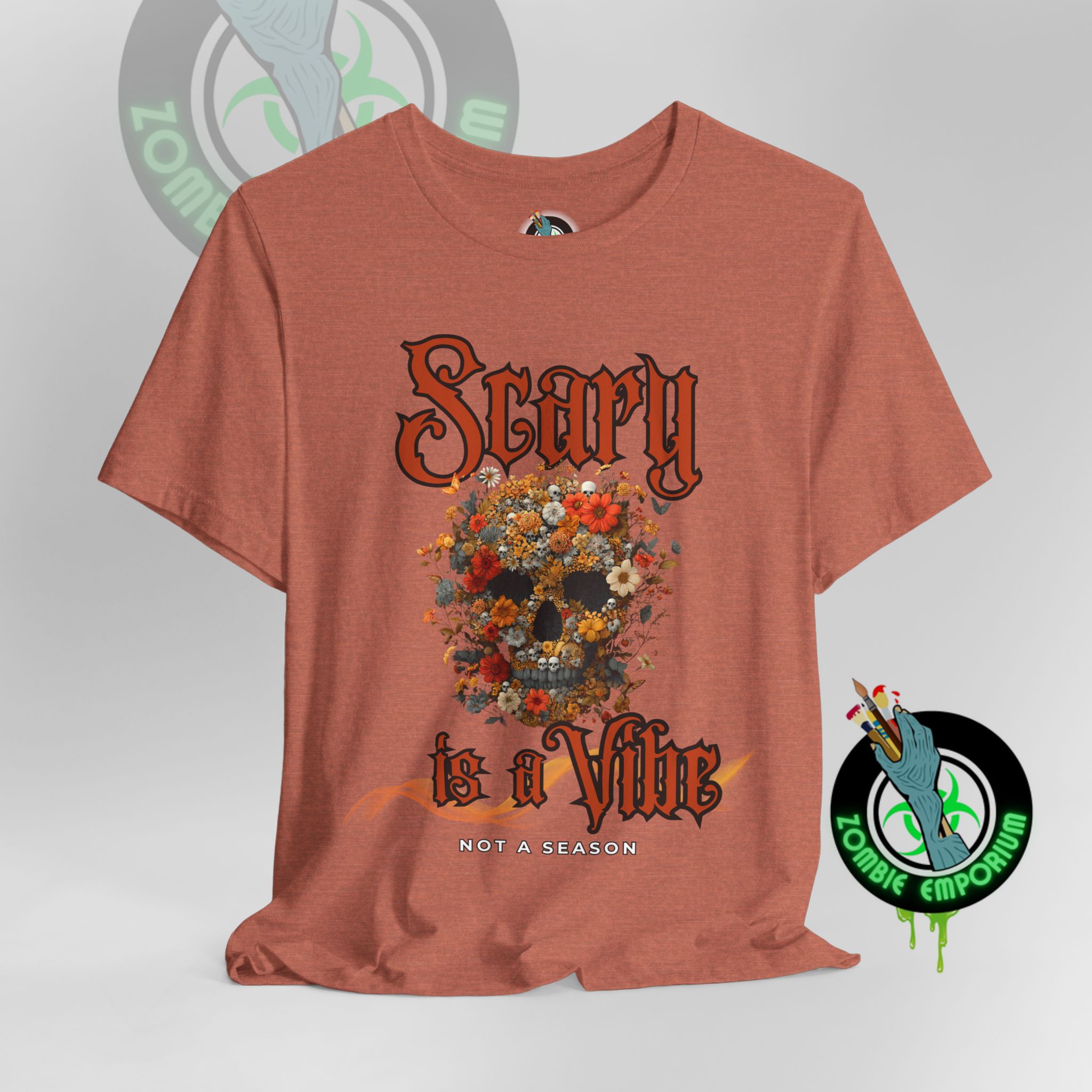 💀 Scary is a Vibe Autumn T-Shirt – Skull & Autumn Floral Design | Bella Canvas 3001 | Zombie Emporium