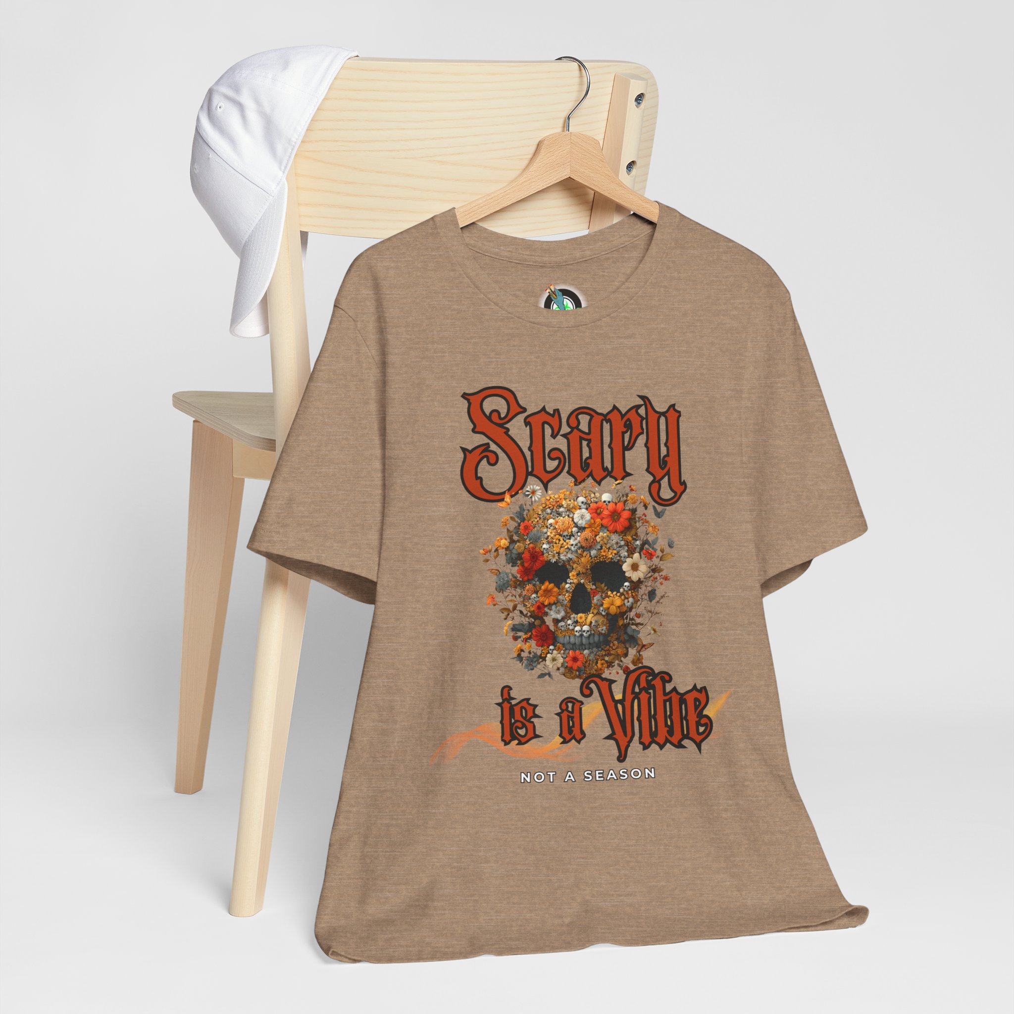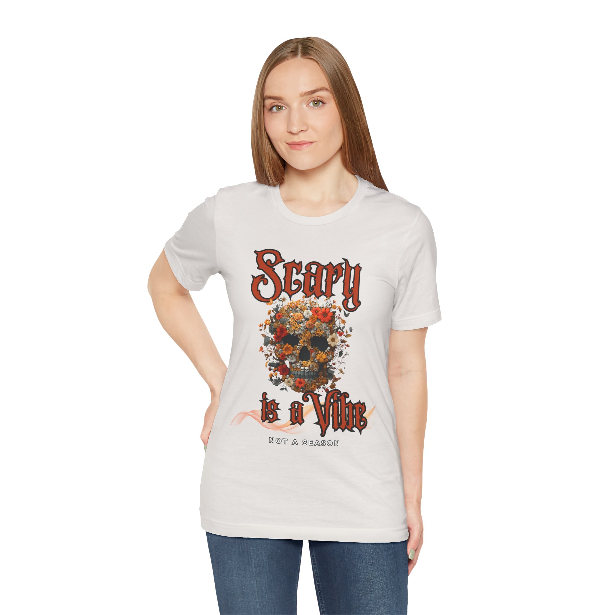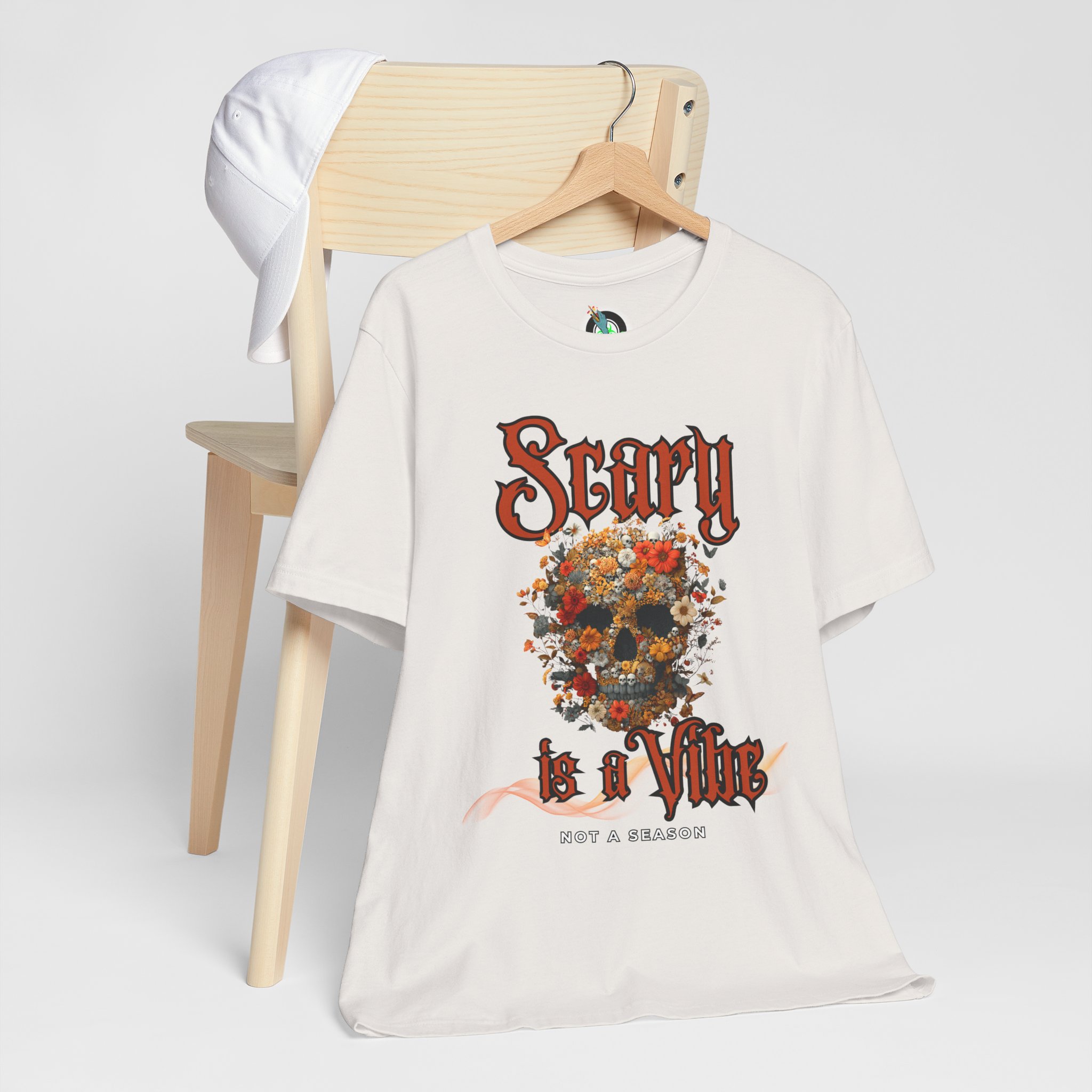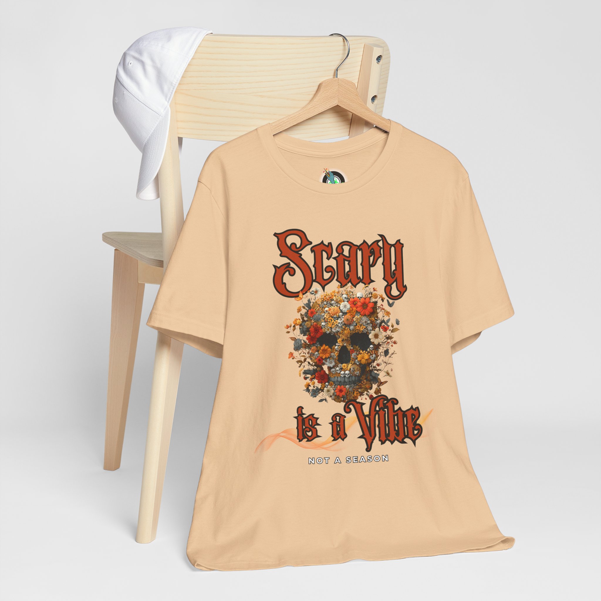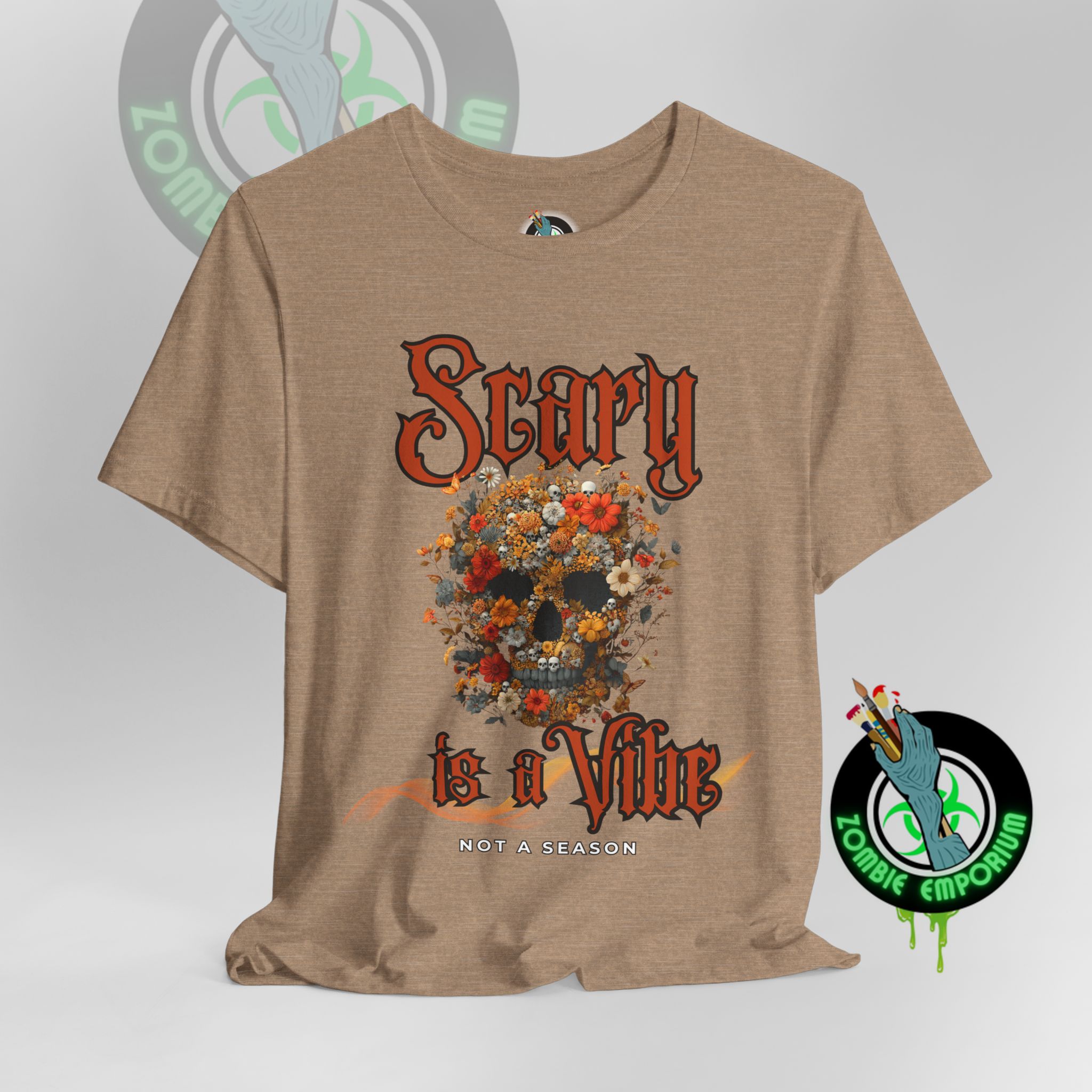 💀 Scary is a Vibe Autumn T-Shirt – Skull & Autumn Floral Design | Bella Canvas 3001 | Zombie Emporium
