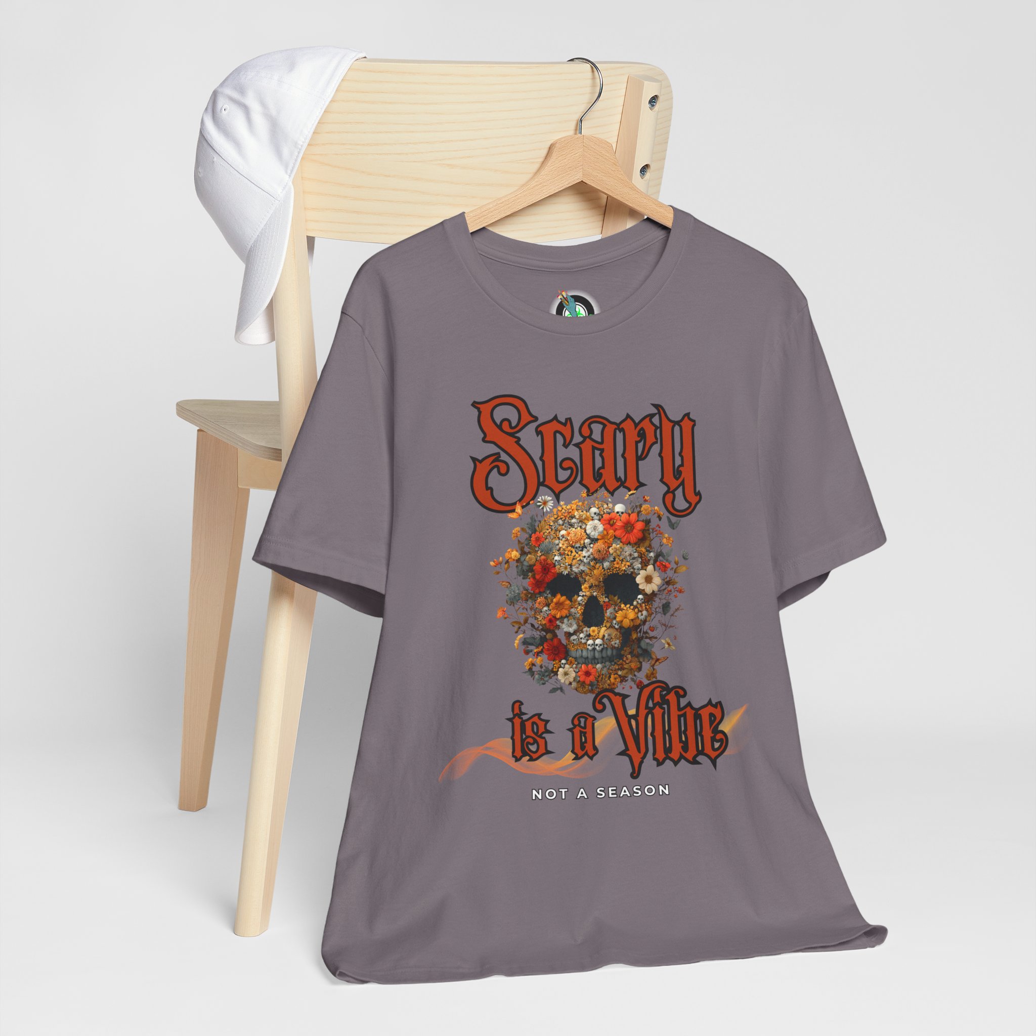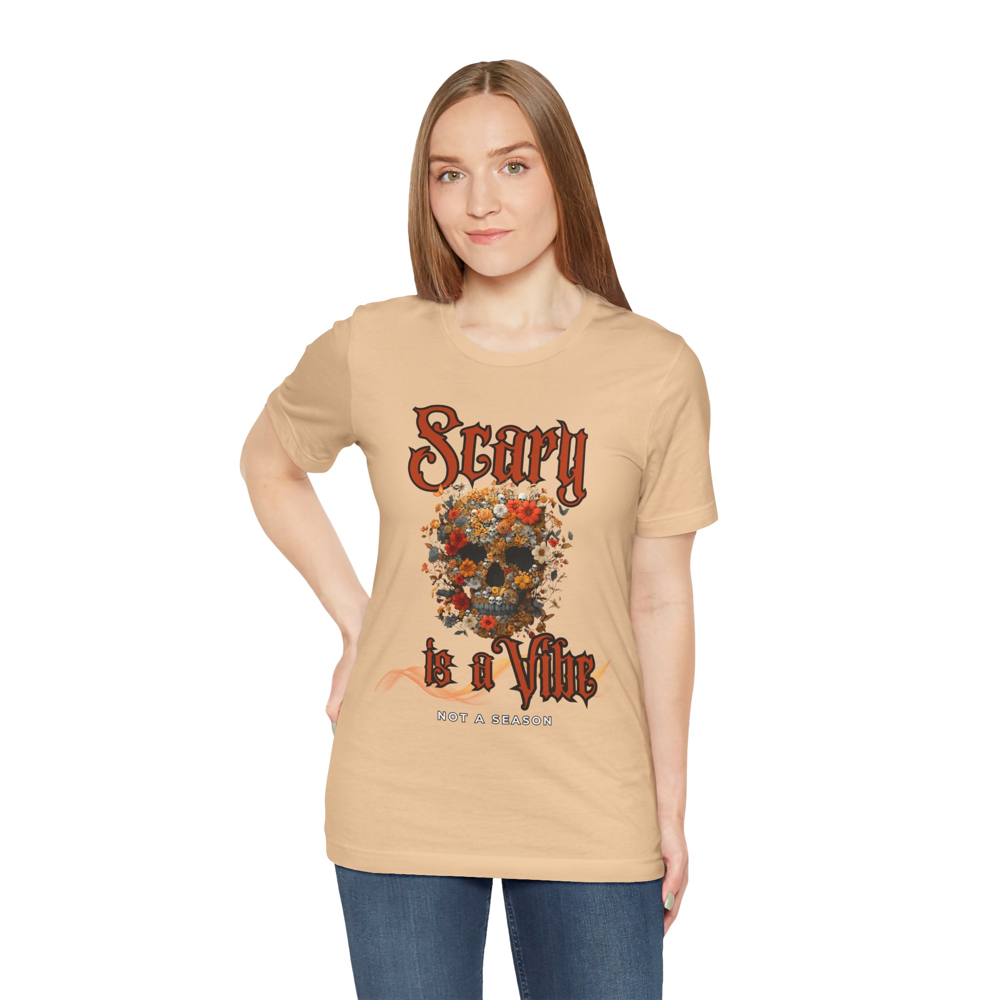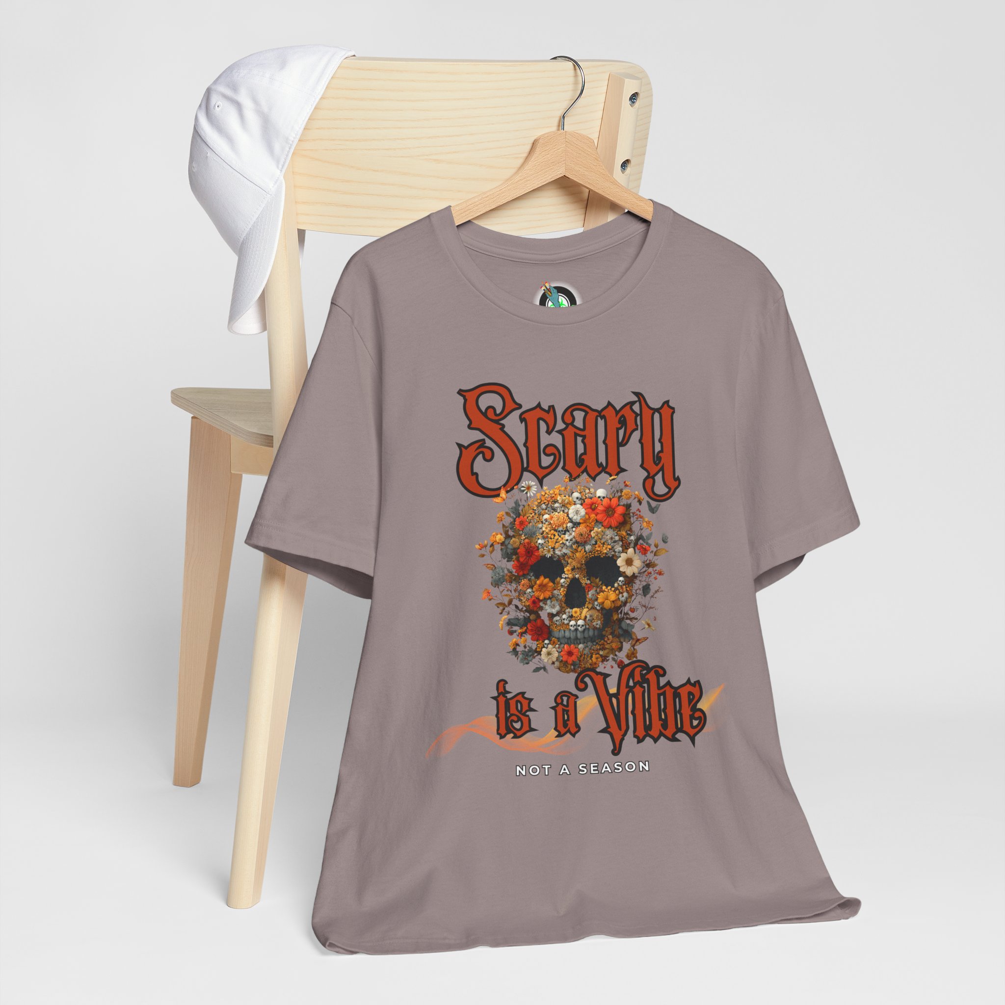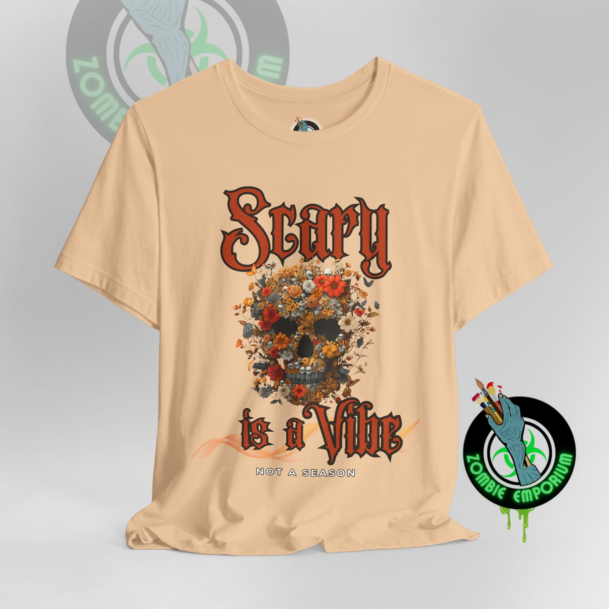 💀 Scary is a Vibe Autumn T-Shirt – Skull & Autumn Floral Design | Bella Canvas 3001 | Zombie Emporium