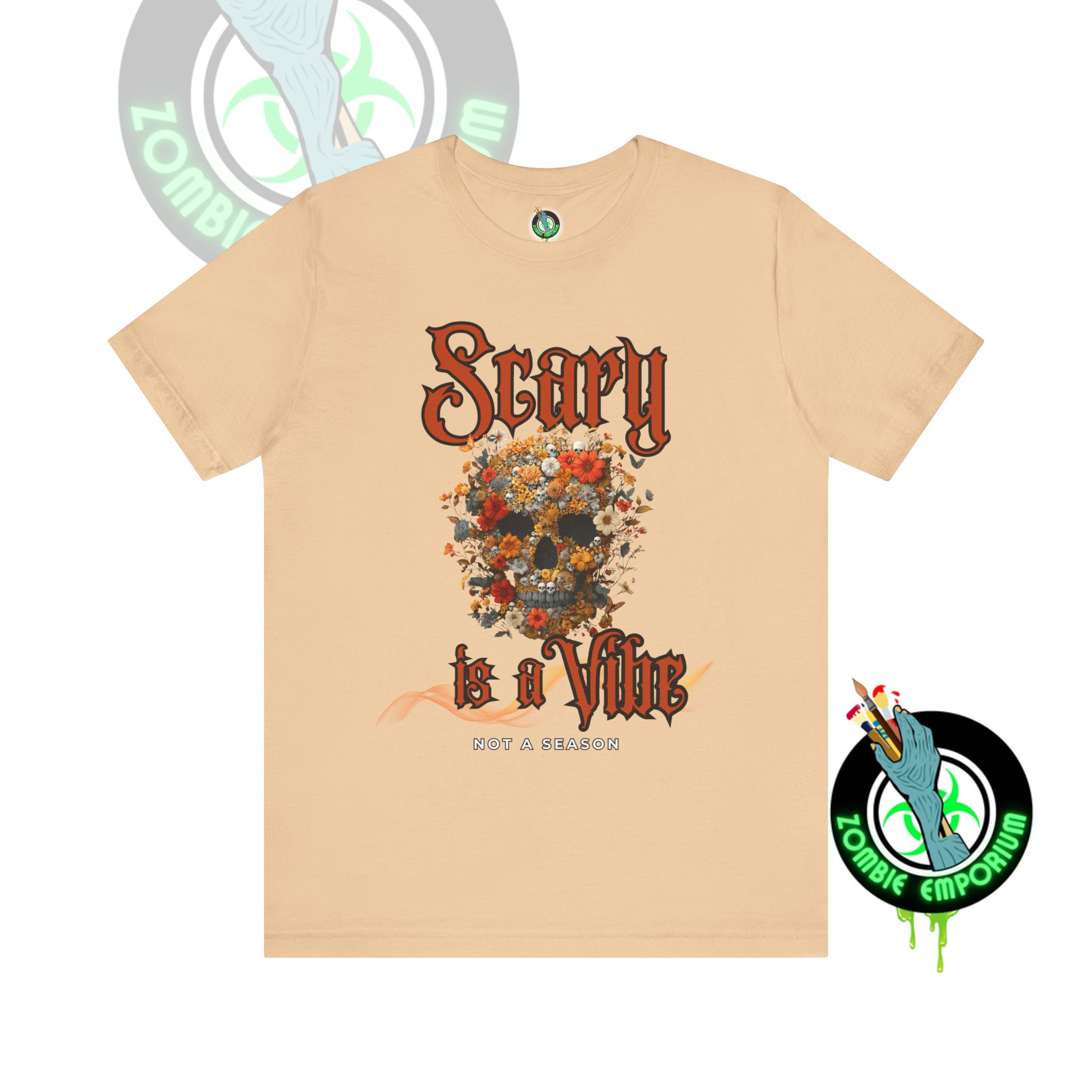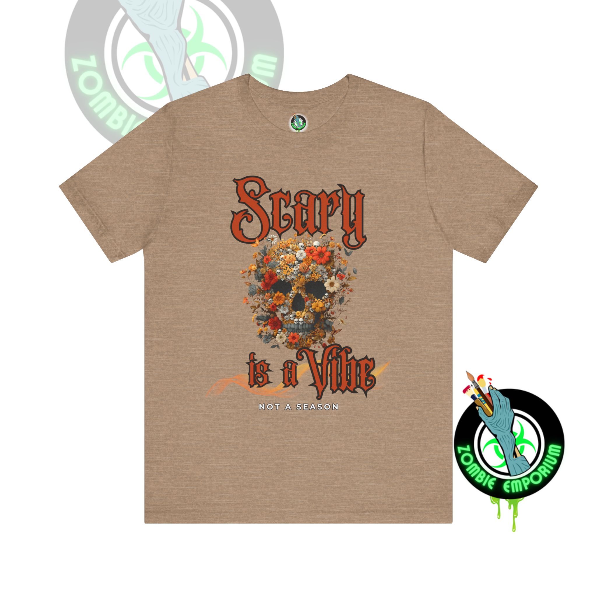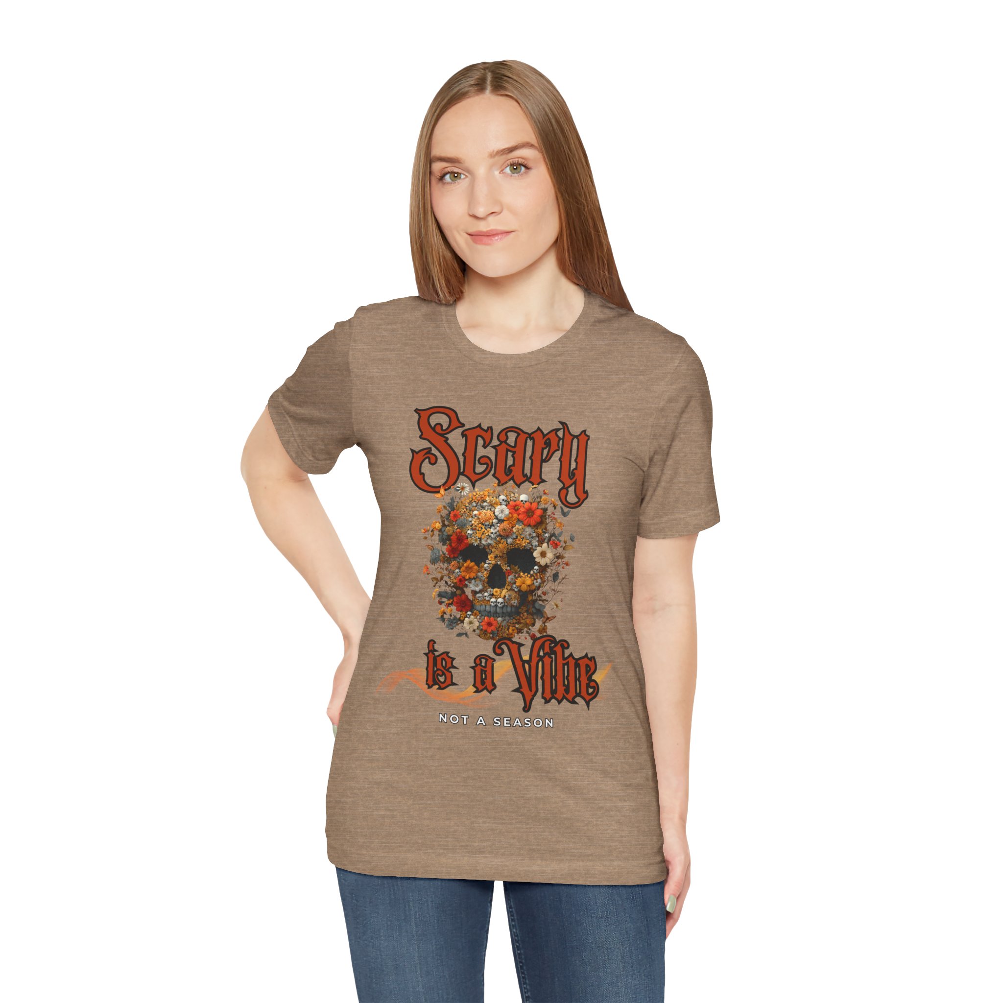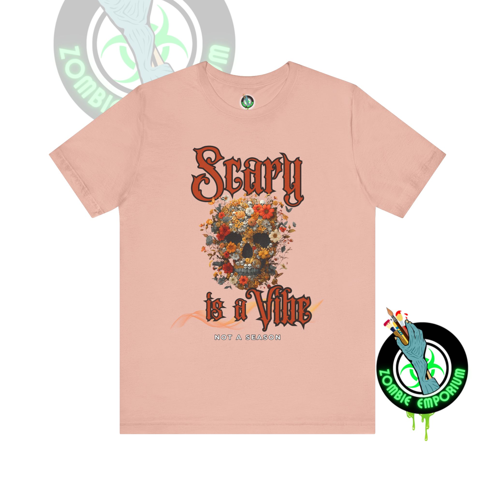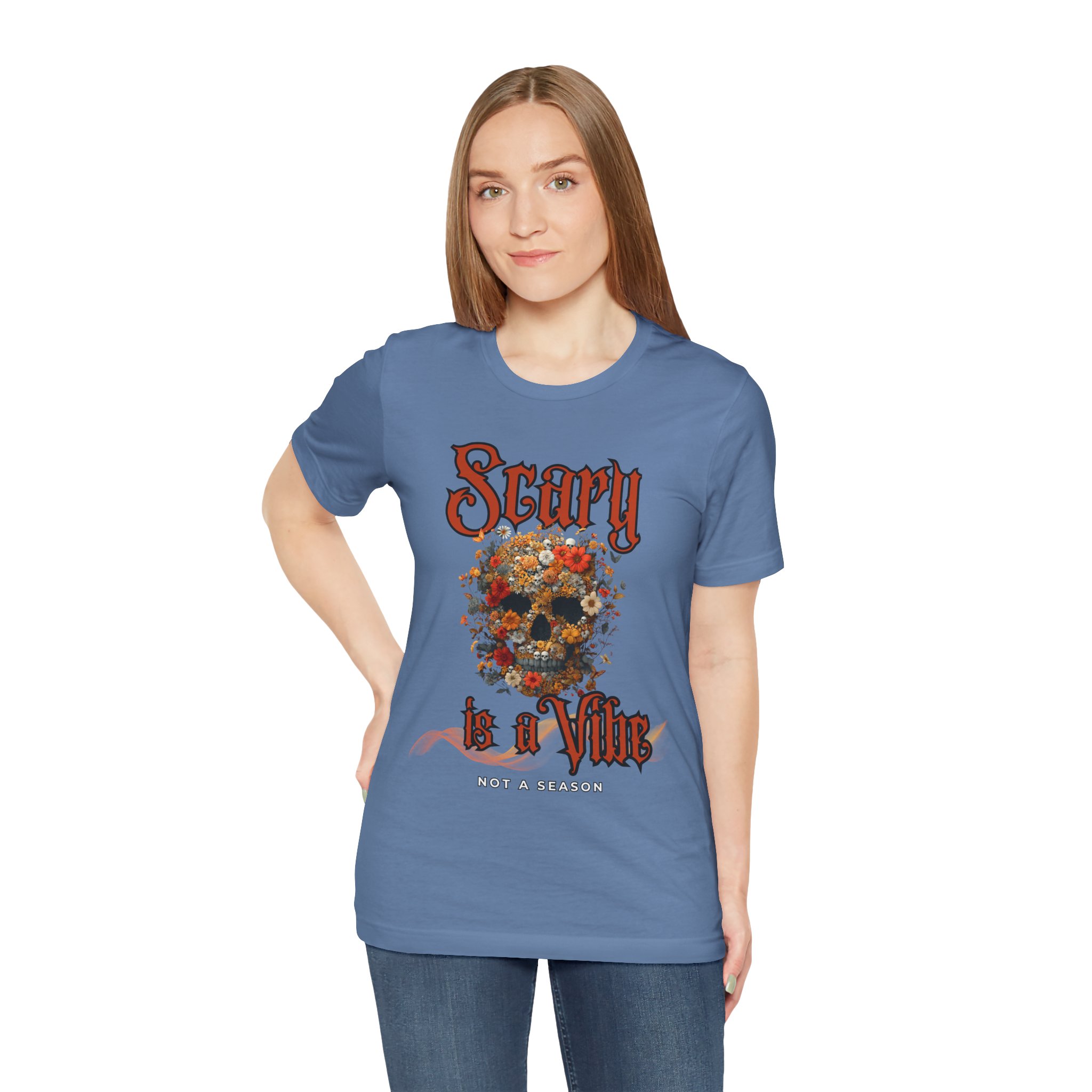 💀 Scary is a Vibe Autumn T-Shirt – Skull & Autumn Floral Design | Bella Canvas 3001 | Zombie Emporium